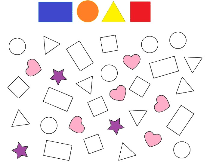 Các dạng bài tập toán cho trẻ mầm non thường chỉ tập trung vào việc hướng dẫn trẻ nhận thức và kích thích tư duy logic phát triển. Với dạng bài tập toán nhận biết hình khối cũng vậy, trẻ sẽ biết phân biệt đâu là hình tròn, đâu là hình vuông, hình nào sẽ là hình chữ nhật…Song song với việc nhận biết hình dáng, các bạn có thể kết hợp cả nội dung nhận biết và phân biệt màu sắc cho các bé.